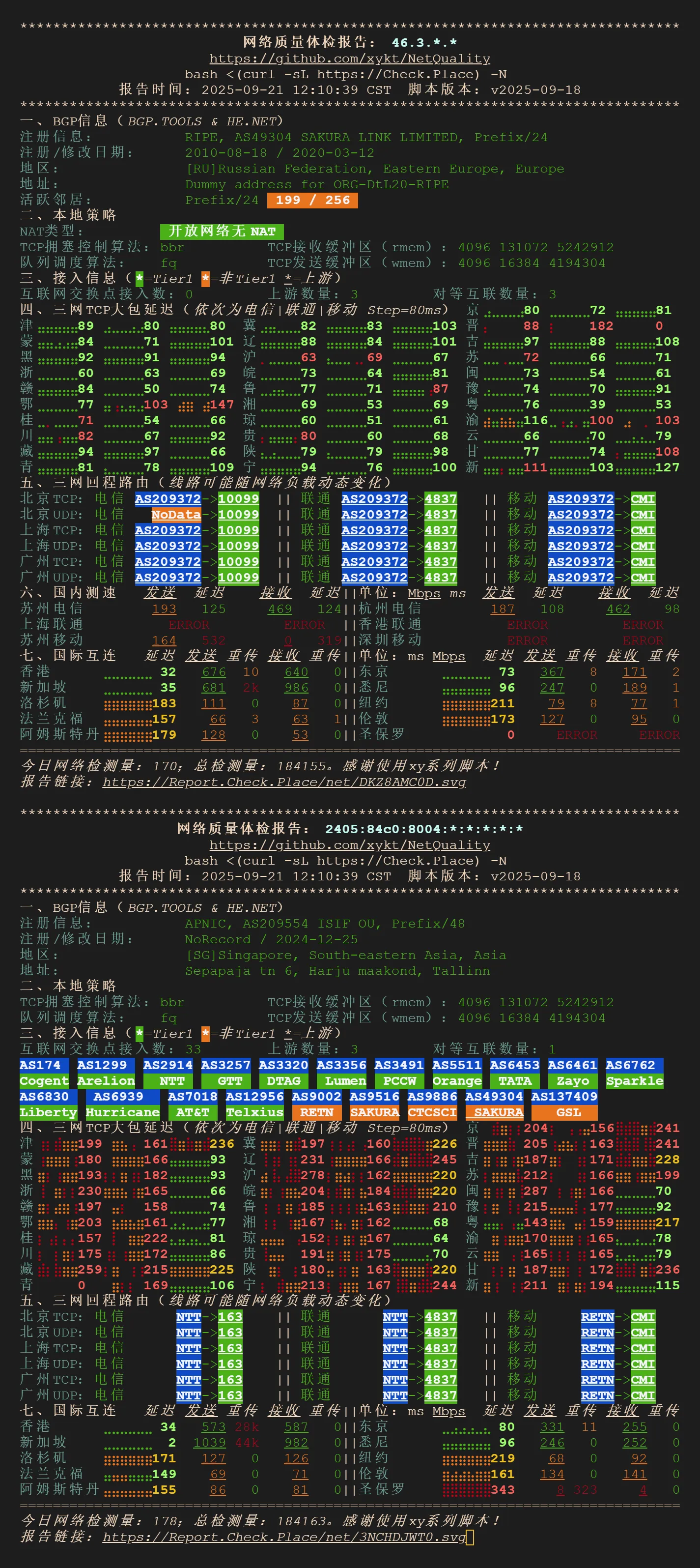 我的这一款是193,线路是优化线路(非顶级),联通测试的是4837,但其实实际上是10099,也就是国际线路走的是CUG,联通快乐机,完全可以拉动。还有一款的ip是192段的,这个三网顶级(CTGGIA, 9929, CMIN2),但是溢价太高,就没有收这一款。